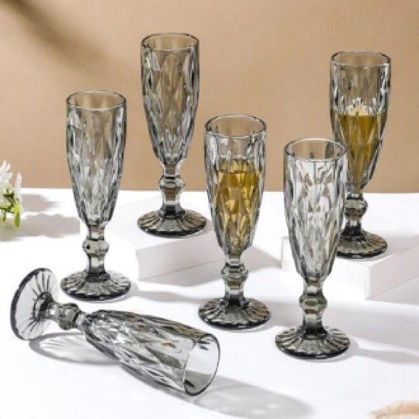 Copas de champagne labrado. Incluye 6 unidades, ideal para lucir en tu mesa.