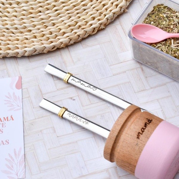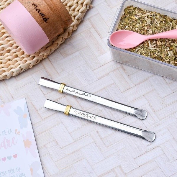 Bombilla de acero con dorado estampada con frase del día de la madre